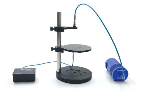 ST-RT 該支架包括可調(diào)滑軌、底座、樣品臺(tái)以及兩個(gè)準(zhǔn)直透鏡,其中上端準(zhǔn)直透射將光纖出射光準(zhǔn)直輸出到待測樣品上,下端準(zhǔn)直透鏡將透射樣品后的光收集耦合入光纖。樣品臺(tái)上放置待測樣品。支架側(cè)邊有可調(diào)滑軌,根據(jù)實(shí)際樣品尺寸調(diào)節(jié)光程。