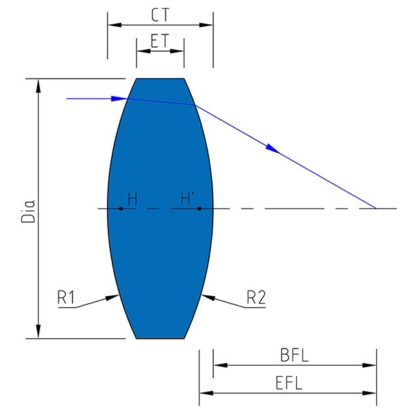 設(shè)計波長:587.6nm; n=1.45848