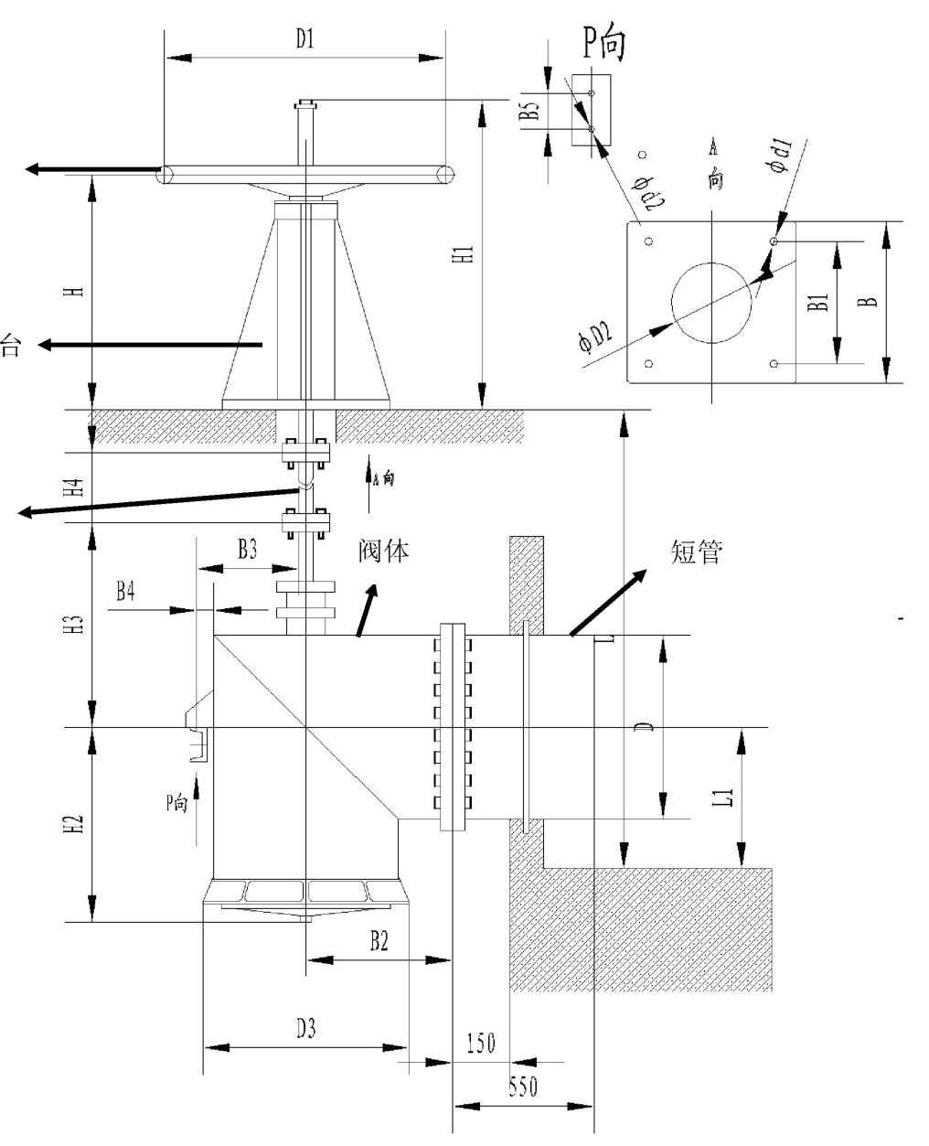 連接閘閥和短管的法蘭(中間加橡膠墊),把短管穿入預(yù)留孔中,借閘閥 的外露閥桿找好垂直度,固定支撐槽鋼。